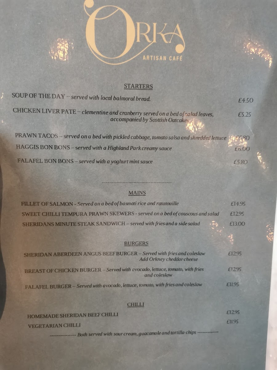 Welcome to Orka Artisan Cafe & Bistro in Ballater, where culinary creativity meets a warm, inviting atmosphere. Nestled at 1 Braemar Rd, this bistro boasts a diverse menu that champions local ingredients and artisanal flair. Customers rave about the extensive offerings, from a hearty full breakfast to delectable sandwiches like the Pulled Pork and zesty Chicken Chipotle panini, all served with prompt, friendly service that enhances the dining experience.